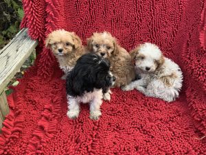 The Cavapoo breed is one of the most popular breeds for several reasons: the main one being their sweet temperaments, of course, but also their small size (14-20#) their hypoallergenic and non-shed coats, and their overall compatibility and good manners. It is one of the very least likely dog breeds to be ill-tempered! If anyone in your a family is not a dog-lover, one of these pups will change their minds!!