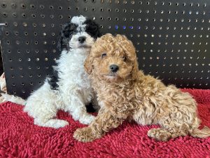 Great price on these female , micro-chipped, vet-checked miniature poodle puppies born 1-5-26. If you are looking for a gorgeous, intelligent, non-shed puppy with a great temperament, look no further than these puppies. They will get to be around 12-16 # as adults, and will need professional grooming to look their best. They are very playful and yet cuddly right now, and will stay that way as they become part of your family and figure out what it is that makes you happy!