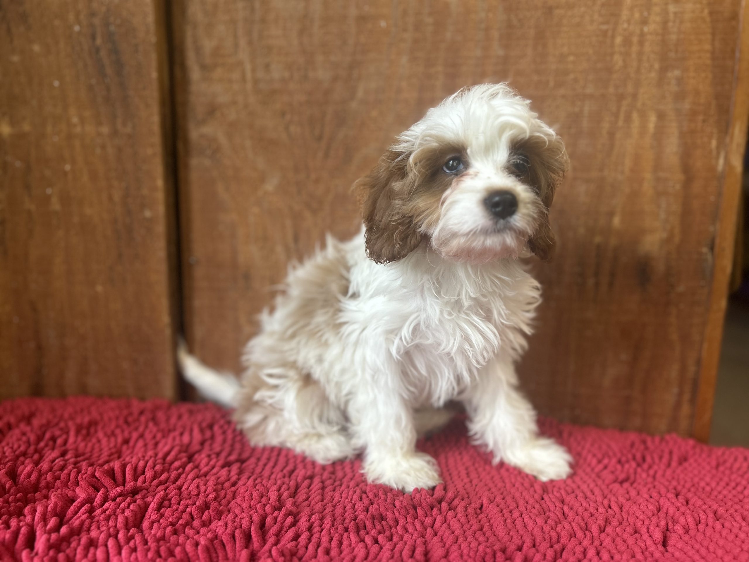 Born 12-28-25 this puppy is the result of a 11 # male poodle bred to a 14 # Cavalier King Charles. Many people say that this is the perfect small breed dog because Cavaliers hold the record for sweetest disposition, and everybody knows how intelligent poodles are: the coat that this pup has is very low-shed.  He is already vet-checked and ready to go.  You will absolutely not find a similar breed at a better price than what we have listed him for: plus you get a free follow-up vet visit at Doctor Paws Vet Hospital. Come check him out: you might just take him home!