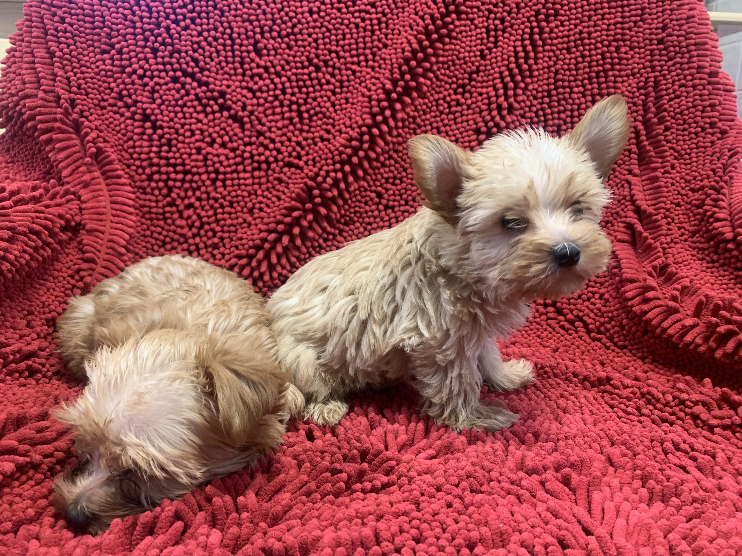 There is a reason people love Yorkie-poos: they combine the good looks and spunkiness of the Yorkshire terrier, along with the intelligence, trainability, and non-shed coat of the mini-poodle. The