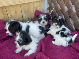 We will be getting in a really nice litter of  5 shih-tzu X Havanese-mini poodle pups on March 31. They will get vet-checked by our mobile vet clinic staff on April 2, and will then be ready to go to new homes. These puppies will be low-shed, and very fun to have as a puppy breed. They will be 8-11 # as adults. What better way to welcome in spring and Easter than with a happy little teddy bear puppy? Your family will thank you for a very long time as she snuggles her/his way into your hearts!