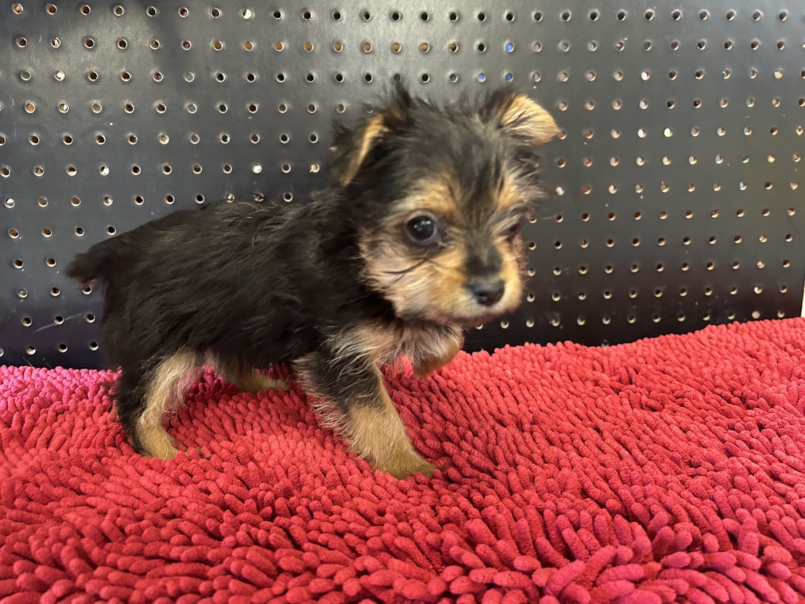 This little snuggling firecracker was born 12-27-25, and will end up around 7-8 # full-grown. She already gets along very well with other puppies, is very active, but melts right o in your arms when you pick her up. She has an umbilical hernia, which is why she is discounted. Umbilical hernias are more cosmetic, than a health problem. She will need grooming to look her best. Small breed puppies like her usually live well into their mid-teens, so count on having her give you lots of good memories.